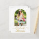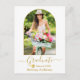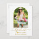 Modern Arch Foto Frame - Trendy Calligrafy Script - Ankündigung von Foto Abschluss Postcard - White Background with Gold Text - Gold Graduation Cap