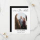 Elegante Save the Date Karte mit einem modernen Foto mit einem stilvollen Paar, das zwischen Felsformationen stehend ist. Minimalistische Typografie und sauberes Layout.