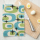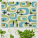 Farbenfrohe Retro Mitte Jahrhundert Modernes Atomic Muster in Grün & Blau.