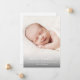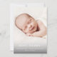 Eine süße Budget-Foto-Geburtsankündigung mit modernen Namen und komplettem blutsenkrechten Porträt-Foto. Auf der Rückseite befinden sich zwei weitere Foto-Spots, ein großer Vollnamenheader und eine persönliche Nachricht aus der Familie.