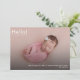 Niedliche, moderne und schlichte Geburtsankündigung von Fotos mit einem voll blutenden horizontalen Foto. Auf der Rückseite befindet sich ein weiteres Foto in einem Rahmen mit zusätzlichen Informationen, die Sie durch Ihre benutzerdefinierte Nachricht ersetzen können.