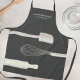 Dieses Produktdesign zeigt Abbildungen von Whisk, Button und Spatel. Das Backwerkzeug-Design in Imitat Weißgold auf dunkelgrauem Hintergrund macht eine einfache, moderne und einzigartige Backindustrie-Schürze für Bäckereien und Konditoreien Koch.