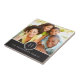 Diese elegante und moderne Kachel zeigt ein Bild einer Familie oder eines Paares im Hintergrund, einen Kreis mit einem Monogramm auf der Vorderseite und ein horizontales Banner auf der Unterseite, das den Familiennamen beinhaltet. Diese Kachel ist ein großartiges Geschenk für Familienfeiern, ein Paar, das verlobt oder verheiratet got, oder eine neue Zuhause.