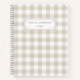 Personalisiertes Rezept-Notebook mit beige Büffel kariert/Gingham/Karo-Muster. Personalisieren mit Namen und Text.
