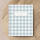 Ein speziell entworfenes Rezept-Notebook mit individuelle Name auf weichem, staubblauen Büffel-Karo-Muster.