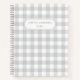 Ein speziell entworfenes Rezept-Notebook mit individuelle Name auf einem hellgrauen Büffel-Karo.