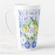 Hochwertige, Vintage, latte Tasse im Bauernstil mit frischen, gelben, blauen und weißen Farbtönen helfen Ihnen am Morgen wecken! Audrey Jeanne Roberts wurde von einer international anerkannten Künstlerin und Designerin aus handgemalten Werken erschaffen und ist auf diese hochwertigen Tasse für ein Leben voller Genuss gedruckt. Ein botanischer Zitrusblumenkranz mit hängenden Zitronen, weißen Zitronenblüten und Federgrün umgeben Ihr Familienmonogramm. Ein Vintages, mediterranes, blau-weiß bemaltes Mosaikfliesen ist klassisch, zeitlos und dennoch trendig. Urheberrecht.