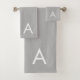 Editierbares weißes Monogramm auf silbergrauem Hintergrund Bath Handtuch Set.