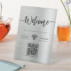 Modernes Begrüßungsskript WIFI QR Code Silver Meta Sockelschild
