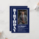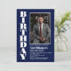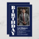 Laden Sie Ihre Freunde und Lieben mit diesem modernen Marineblau mit einem Foto-Geburtstagsfest in weißem Text ein. Text kann für jedes Alter angepasst werden.
