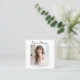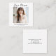 Moderne und berufliche weiße Quadrat-Visitenkarte personalisiert mit Ihrem Namen in einem eleganten Skript-Schriftart, Ihrem Foto und anderen beruflichen Informationen