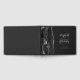 Dieses elegante Gästebuch besticht durch ein schwarzes Aquarell-Design, das mit Imitaten silbernen Glitzer besticht. Einfach den silbergrauen Text auf einem dunkelschwarzen Hintergrund anpassen, mit den Namen der Braut und des Bräutigams in skurriler Handschrift Kalligraphie über einen großen Ampersand. Fügen Sie dem Vorder- und Rückgrat einen zusätzlichen Text Ihrer Wahl hinzu.