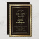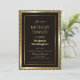 Eine moderne Party Einladung zum Abendessen mit goldgelbem Rahmen in einem goldgelben Rahmen mit diagonal gestreiftem Rahmen auf schwarzem Hintergrund.