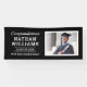 Das einfache und stilvolle Banner-Zeichen "Herzlichen Glückwunsch" des Abschlusses enthält ein Foto des Absolventen mit modernem und männlichem Text, der mit dem Namen, der Schule und dem Unterrichtsjahr personalisiert werden kann. Beachten Sie, dass der Schwarzweißtext so geändert werden kann, dass er mit den Farben für Schule oder Party koordiniert wird.