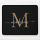 Modernes Black Gold Monogram Elegante Girly Script Mousepad