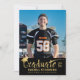 Moderne Abschluss-Ankündigung mit einem handgeschriebenen Pinselstrich GRADUATE Titel in Gold mit einem Imitat Metallic Goldfolie Graduierdeckel und Klasse Jahr mit 2 Bildern (eins auf jeder Seite) in Ihrer Wahl der Hintergrundfarbe (in schwarz dargestellt). Die Rückseite bietet ein optionales Textfeld für Informationen über Ihren Absolventen (Leistungen und/oder Pläne). HILFE: Für Hilfe bei der Modifizierung oder Personalisierung des Designs, bei Farbänderungen, bei der Übertragung des Designs auf ein anderes Produkt oder wenn Sie die Dinge koordinieren möchten, wenden Sie sich bitte an den Designer, bevor Sie die Bestellung über den Zazzle Chat MESSAGE Tab durchführen oder per E-Mail an makeitaboutyoustore@gmail.com.