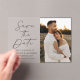 Mit dieser atemberaubenden Modern Black Script Foto Save the Date Card können Sie Ihren großen Tag stilvoll verkünden! Dieses elegante Design mit transparentem Acrylhintergrund präsentiert sich "Save the Date" in eleganter schwarzer Kalligrafie und schafft einen eleganten, aber trendigen Look, der moderne Hochzeiten perfekt ergänzt. Personalisieren Sie diese minimalistisch Save the Date mit Ihren Namen, Hochzeitsdatum, Ort und eine vertikale Verlobung Foto, um eine persönliche Touch hinzuzufügen. Dieses Acryl ist Save the Date eine ideale Wahl für Paare, die gewollt haben, einen bleibenden Eindruck zu hinterlassen und den Ton für ein stilvolles, zeitgenössisches Hochzeitsfest Set.