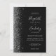 Die links Kulisse dieser modernen Hochzeitseinladung besticht durch ein silbernes Imitat-Glitzer-Design. Der anpassbare Text kombiniert silbergraue Handschrift, Kupferplatte und kursiv Schriftart auf schwarzem Hintergrund. Fügen Sie Ihr Lieblings-Foto auf der Rückseite zusammen mit zusätzlichem Text und einem QR-Code, um Gäste auf Ihre Hochzeitswebsite zu schicken.