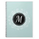 Schönes Notizbuch mit minzblauen Blumenkranz und personalisierten Monogramm.
