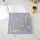 Gästebuch Hochzeitfolie mit modernem Blätter-Design. Farblich blau graue Farbe mit einem Hauch von Lavendel und echter Goldfolie. Passen Sie die Vorderseite und die Seite mit Ihrem gewünschten Text an. Eine tolle Möglichkeit für Ihre Hochzeit. Verwenden Sie die Vorlage, um Ihre eigenen modernen Blätter Hochzeitsfolie Gästebuch zu erstellen.