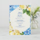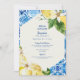 Einladung zur Brautdusche. Blaue Mittelmeerlemonen. Moderner Schriftart. Modernes Design. Blau und Gelb.