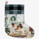 Modernes Blau Kariert mit Foto und Namen | Großer Weihnachtsstrumpf