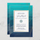 Diese moderne und elegante Bat Mitzvah oder Bar Mitzvah Einladung verfügt über goldene (simulierte Folie) Linien über einen aquamarinen und navy-ombre-Hintergrund (die sich leicht in jede beliebige Farbe ändern lassen). Ein Stern von David wird vorgestellt und entspricht den Goldlinien im Hintergrund. Passen Sie diese trendige Einladung mit dem Namen und Party-Info an.