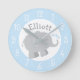 Modernes Blau und Graue Elefant Custom Monogram Runde Wanduhr