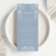 Modernes, blaues französisches Hochzeitmenü für Ro Menükarte