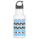 Diese moderne Wasserflasche zeichnet sich durch ein farbenfrohes geometrisches Herringbone-Muster in himmelblau und dunkelgrau aus.