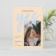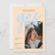 Eine moderne Save the Date Card mit einer frischen Farbpalette aus Blau und Rot, mit einem großen kalligraphischen Script für Yes - auch als Muster auf der Rückseite - und Ihrem Wunschbild. Alle Farben dieses Fotos Save the Date Vorlage können geändert werden! Eine einmalige, aber erschwingliche Save the Date Einladung für moderne Paare.