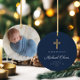 Moderne Blue Boy Taufe Foto Keramik Ornament.