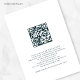 Moderne Blue Florals QR Code Hochzeit. Schöne Blume in Blau und Weiß schmücken den oberen Rand. Fügen Sie Ihren QR-Code zu Ihrer Hochzeitswebsite auf der Rückseite hinzu, damit Ihre Gäste alle Details online sehen können, ohne separate Gehäuse benötigen zu müssen. Eine informelle Set-Typografie in schwarz für die Hauptüberschrift der Hochzeit von Ergänzung der Erholung des Textes, die Sie leicht personalisieren können.