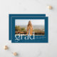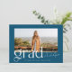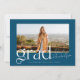 Diese moderne und trendige Ankündigung des Abschlusses besticht durch eine blauen und weißen Farbpalette und ein großes Foto Ihres Absolventen. Ein elegantes und stilvolles "Grad" schmückt die Vorderseite. Auf der Rückseite der Karte befindet sich ein einfacher Typ, mit dem Sie mehr über Ihren Absolventen und deren Plan für die Zukunft erfahren können. Oder man kann es zu einer Abschlussfeier-Einladung wechseln. Andere Versionen dieses Designs finden Sie in meinem Zazzle-Shop.