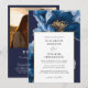 Modernes Blue Gold Floral Foto QR Code Hochzeit Einladung