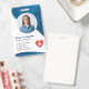Erstellen Sie ein berufliches und stilvolles ID-Abzeichen für registrierte Krankenschwestern und Krankenpfleger. Diese anpassbare Vorlage zeichnet sich durch ein modernes blaues Design aus, das sich perfekt für Krankenhäuser, Kliniken und Gesundheitseinrichtungen eignet. Personalisieren Sie einfach mit Ihrem Foto, Namen, Titel (Registered Nurse RN), ID Nummer, Ort und vielem mehr. Fügen Sie der Rückseite einen Strichcode hinzu, um die Sicherheit zu erhöhen. Das saubere Layout sorgt dafür, dass alle wichtigen Informationen übersichtlich dargestellt werden. Diese Vorlage ist auch für andere Angehörige der Gesundheitsberufe leicht anpassbar. Stellen Sie einfach die Textfelder so ein, dass sie Ihre spezifische Rolle und Information widerspiegeln.