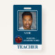 Berufliches Abzeichen für Lehrkräfte an Schulen, Unis und Hochschulen. Laden Sie einfach Ihr Schullogo hoch, aktualisieren Sie den Schulnamen, den Namen des Lehrers, den Titel, die Kontaktinformationen der Schule im Hintergrund und wählen Sie eine Hintergrundfarbe aus, die Ihren Schulfarben entspricht.