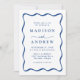 Modernes Blue Wavy Frame Foto Hochzeit Einladung
