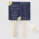 Einfache moderne Navy Blue Gelb Roses Script Blumenzwiebeln Programm Hand Fan. Einfache und moderne Hochzeitshandfan mit einem Hochzeitsprogramm. Diese moderne Hochzeitsmenüvorlage hat schöne gelbe Rosen in Ecken auf einem dunkelmarineblauen Hintergrund und einen modernen weißen Text. Sie können den gesamten Text des Fans ganz einfach anpassen - personalisieren Sie ihn mit den Braut- und Bräutigamen, dem Hochzeitstag und dem Ort, dem Hochzeitsprogramm..