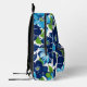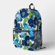 Modernes Blumenblau und grüne Monogramm Bedruckter Rucksack