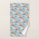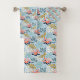 Farbenfrohe stilisierte Pop-Kunst-Blume mit blauen, grünen und schwarzen Akzenten auf himmelblauen Hintergrund bilden ein modernes und stilvolles HandtuchSet.