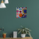 Wenn Sie helle Farben mögen und Blume Liebe haben, dann werden Sie dieses fröhliche, moderne Blumendesign lieben. Die in kräftigen, lebhaften Pastelltönen in Gelb, Blau, Rosa, Grün und Rot gestrichenen Blüten sorgen für ein angenehmes Ambiente, das zum Lächeln einlädt.
