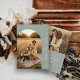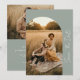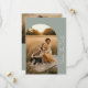 Modernes und minimalistisches Design mit einem boho Rahmen Foto vor einem schlauen Hintergrund mit einem schlanken handgeschriebenen Kalligrafieschrift und einem 2-Foto-Display. Passen Sie Ihre wichtigen Informationen zusammen mit Ihren bevorzugten Fotos auf Vorder- und Rückseite einfach an. Ideal für jedes moderne Hochzeitsthema.