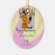 Modernes boho Happy Jubiläum Namensdatum orange hi Keramik Ornament