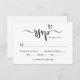 Moderne boho Herz-Kalligrafie Hochzeit RSVP Karten mit einem stilvollen chic typografie Design. Minimaler benutzerdefinierter Text, der mit dem Fälligkeitstermin der UAWG in Schwarz/Weiß personalisiert werden kann. Das Design umfasst eine Zeile für die Namen der Gäste, die Teilnahme an Veranstaltungen, die Auswahl der Mahlzeiten und die Gesamtzahl der Gäste.