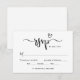 Moderne boho Herz-Kalligrafie Hochzeit RSVP Karten mit einem stilvollen chic typografie Design. Minimaler benutzerdefinierter Text, der mit dem Fälligkeitstermin der UAWG in Schwarz/Weiß personalisiert werden kann. Das Design umfasst eine Zeile für die Namen der Gäste, die Teilnahme an Veranstaltungen, die Auswahl der Mahlzeiten und die Gesamtzahl der Gäste.