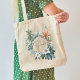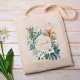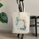 Botanische Grünpflanzen Persönliche Tote Tasche Dieser personalisierte Totenbeutel mit bemalter Aquarellpflanze, grünen Blätter, Blumenarrangements und einem goldfarbenen Rahmen.