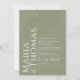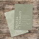 Dieses Design besticht durch ein botanisches boho tropisches Reiseziel, eine Aquarellpalme, ein Design der Blätter, ein Resort Strand Ozeaninsel, eine moderne, schlichte grüne Salbeifarbe, ein tropisches Blumengrün, ein elegantes lässiges, einfaches, modernes, schlichtes Einladungs-System, eine grüne Weissnatur botanisch, eine raffinierte tropische Romantik, eine zeitgenössische Kalligraphische Schrift