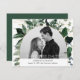 Modernes botanisches Gartengewölbe Foto Save the Date. Features paar Fotos und elegante lackierte Blätter, Aquarell, macht diese Hochzeit speichern Sie die Dattelkarten ist eine ideale Wahl, um Ihre Hochzeit zu verkünden Familie und Freunden. Ideal für den Garten themed Frühjahr oder Sommerhochzeit. Entworfen mit modernem, modernem Bogen-Stil für moderne Hochzeitskinder.