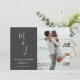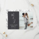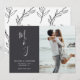 Verkünden Sie Ihren Hochzeitstag mit Ihrem phantastischen Foto vor einem Hintergrund in Mitternachtsfarbe zusammen mit Ihren Initialen in einem skurrilen, modernen Kalligrafieschrift auf der Kartenvorderseite und weichen botanischen Blätter auf der Kartenrückseite. Ideal Save the Date für Hochzeiten, Verlobungen, Jubiläen und andere Veranstaltungen.